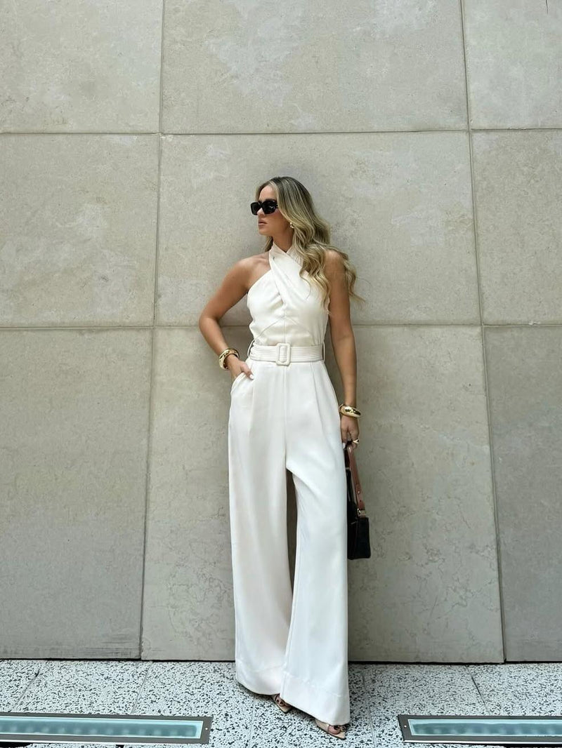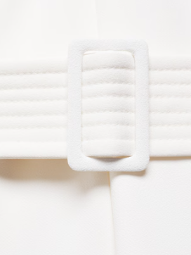 Fluid fabric. Long design. Straight Design. Wrap neckline. Sleeveless. Invisible back zip fastening. Belt loops. Removable belt