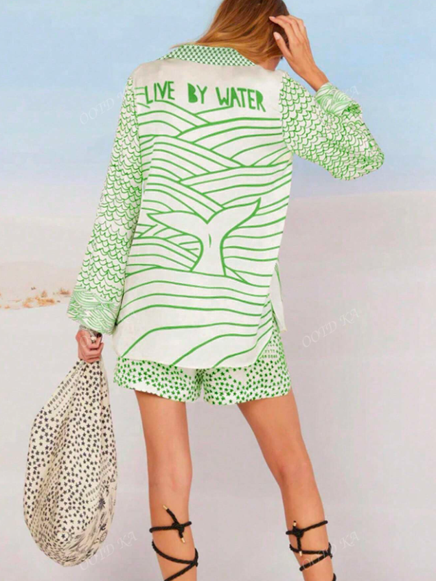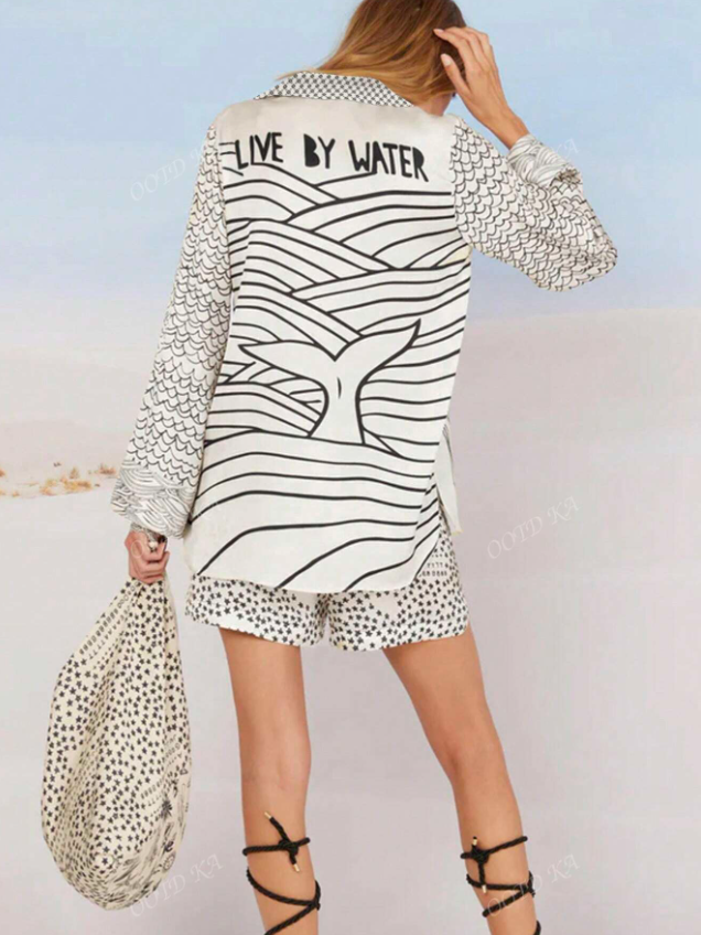 Boho Mermaid Star Pattern Shirt & Shorts Casual Coord Set Set
