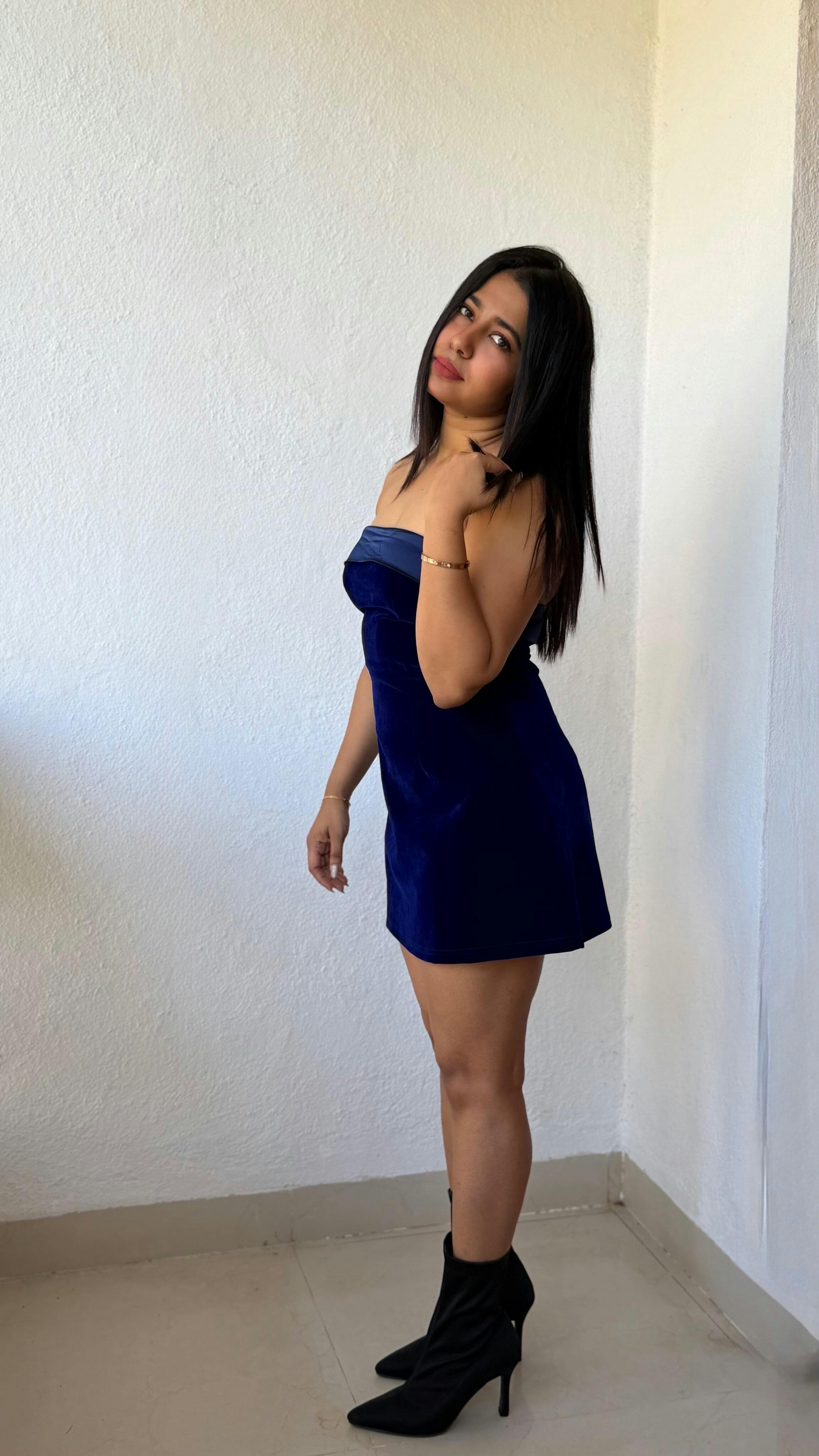 A luxe velvet strapless mini dress engineered for evening elegance, flattering curves, and effortless movement.