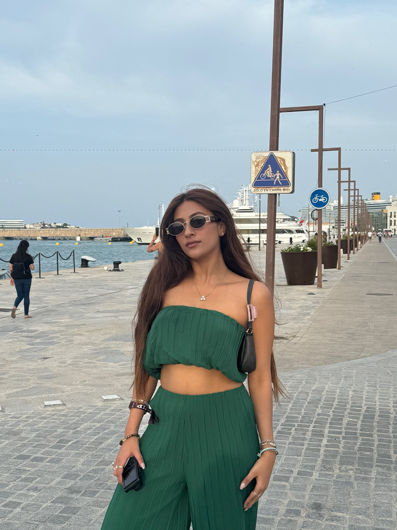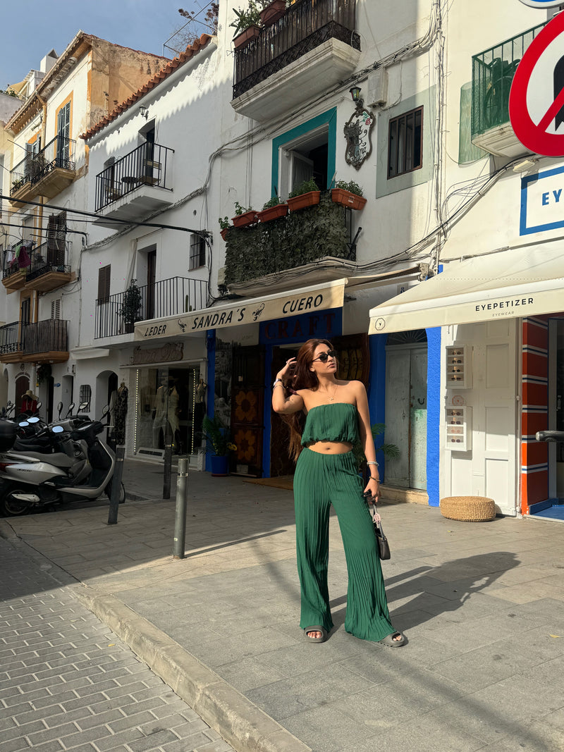 Pleated Tube Top & Wide Leg Pant Coord Set