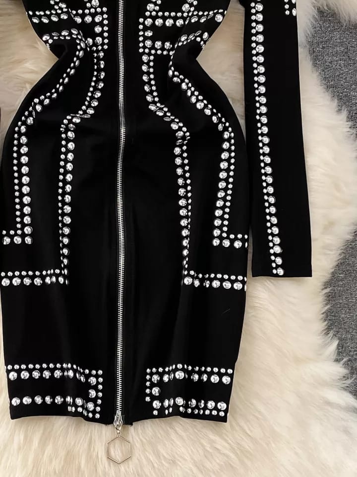 Rivet Buttons Black Dress