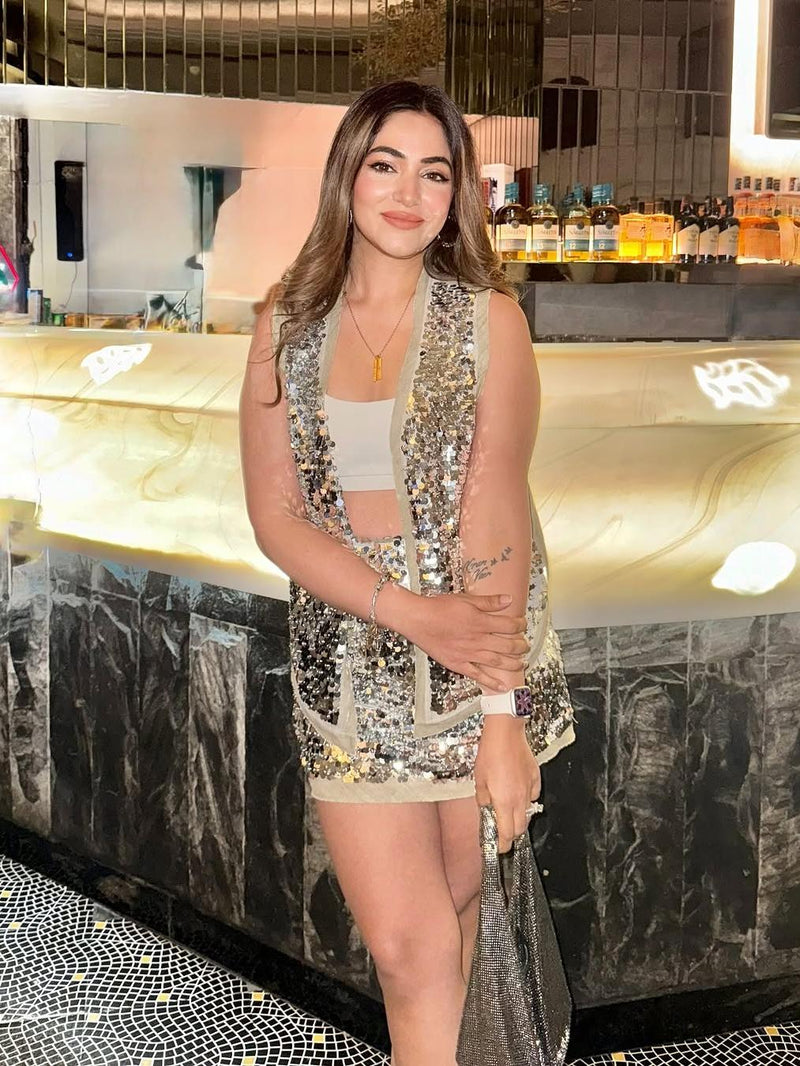 Sequins Vest Waist Coat & Skirt Coord Set