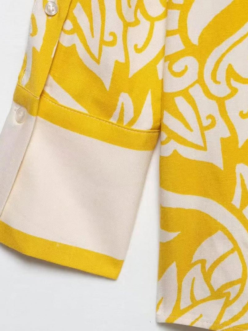 Butter Yellow Floral Print Shirt & Pants Coord Set