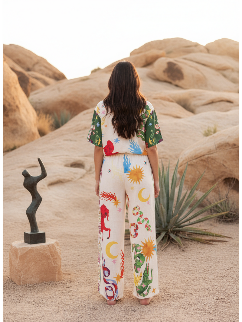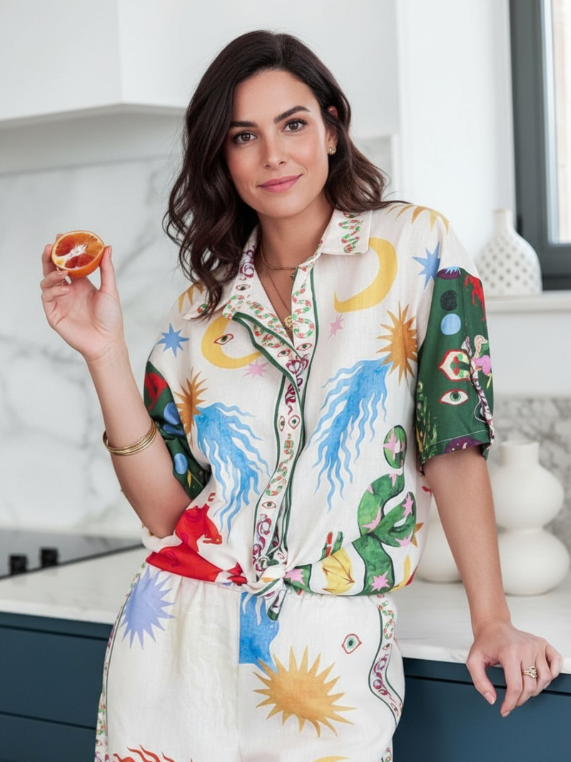 Half Sleeve Sunshine Crocodile Print Shirt & Pants Coord Set