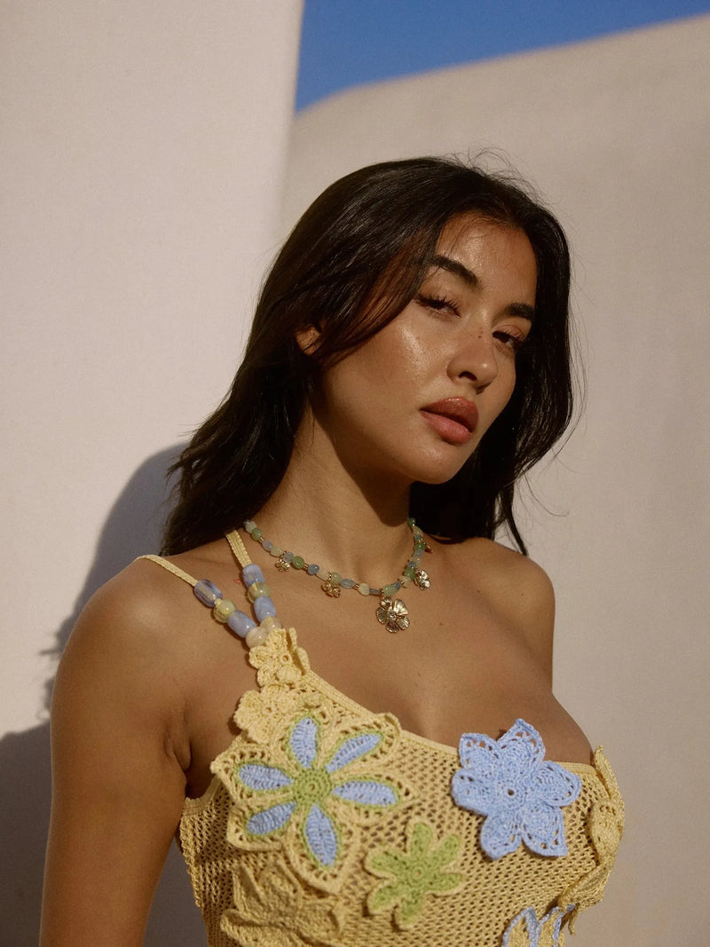 This Namma Crochet Mini Dress showcases a playful and vibrant design perfect for those sunny days. With its crochet detailing and floral accents, it brings a touch of whimsy to any occasion. Ideal for beach outings or casual gatherings, this dress combines comfort and style effortlessly. The bright colors and mini length make it a must-have for a fresh and cheerful wardrobe that stands out beautifully under the sun.