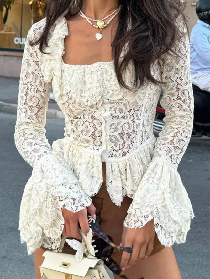 Ruffle Lace Bell Sleeve Top