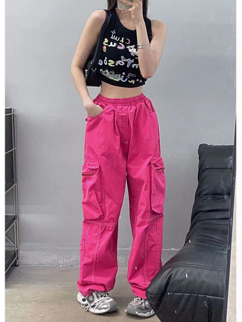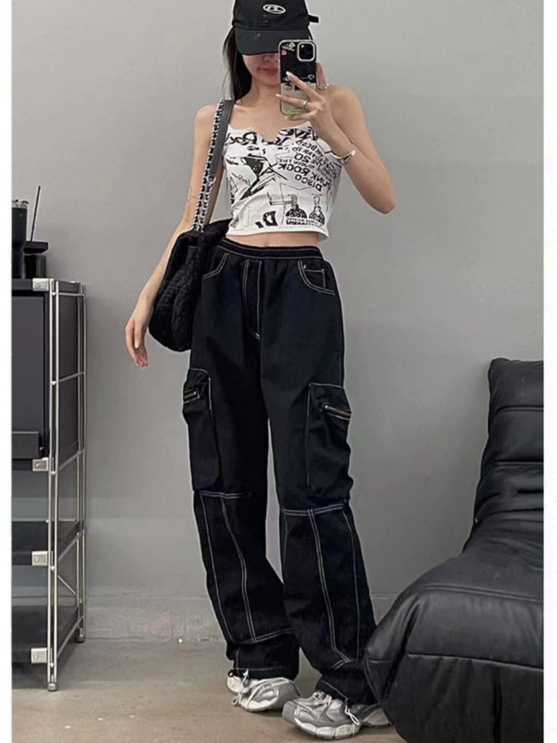 Wide Leg Stitching Cargo Pants