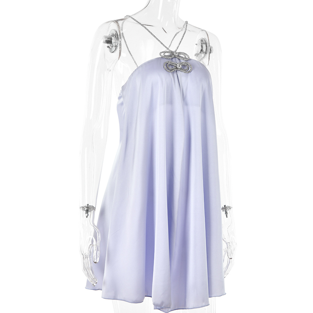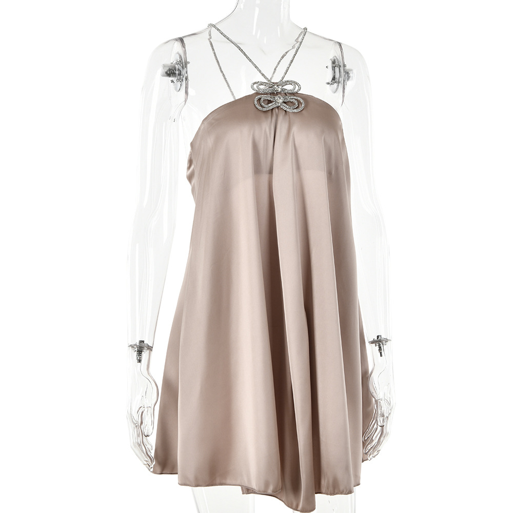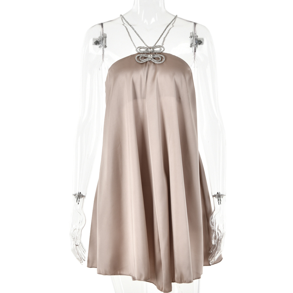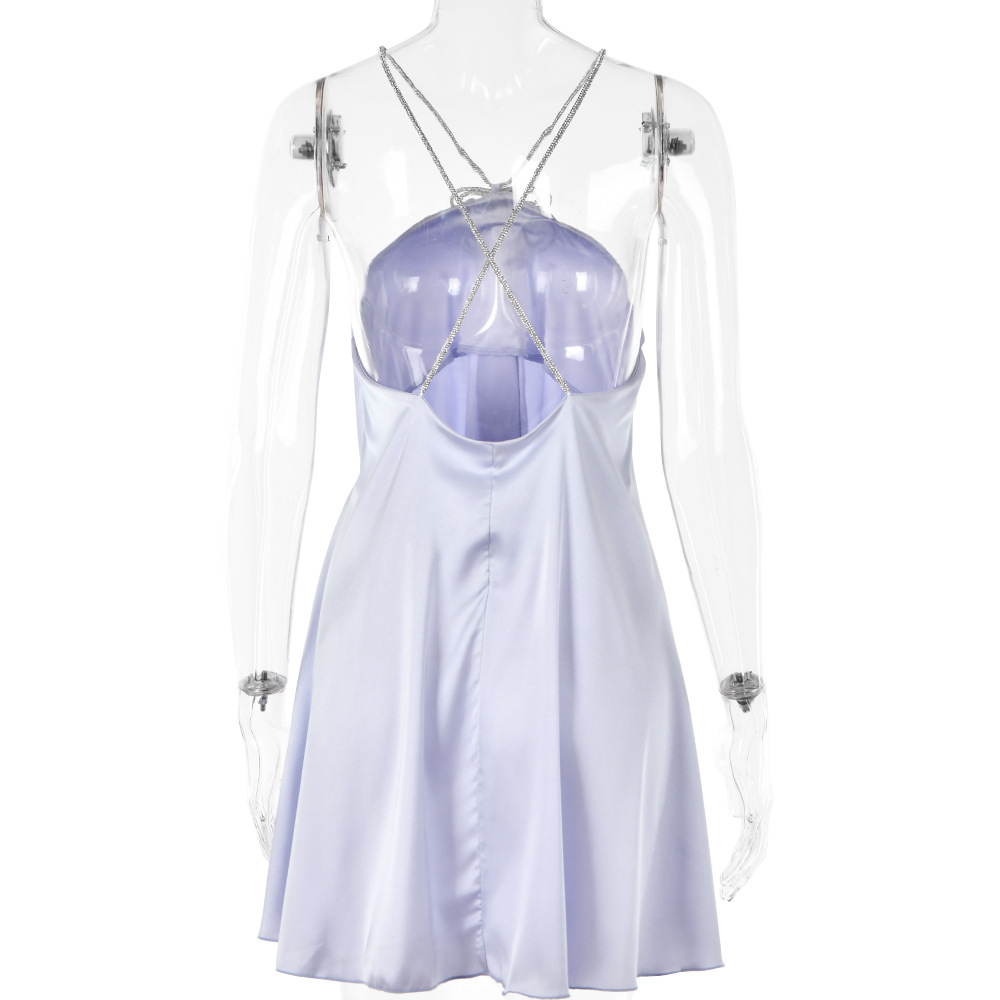 Rhinestone Halterneck Backless Tube Top Short Dress
