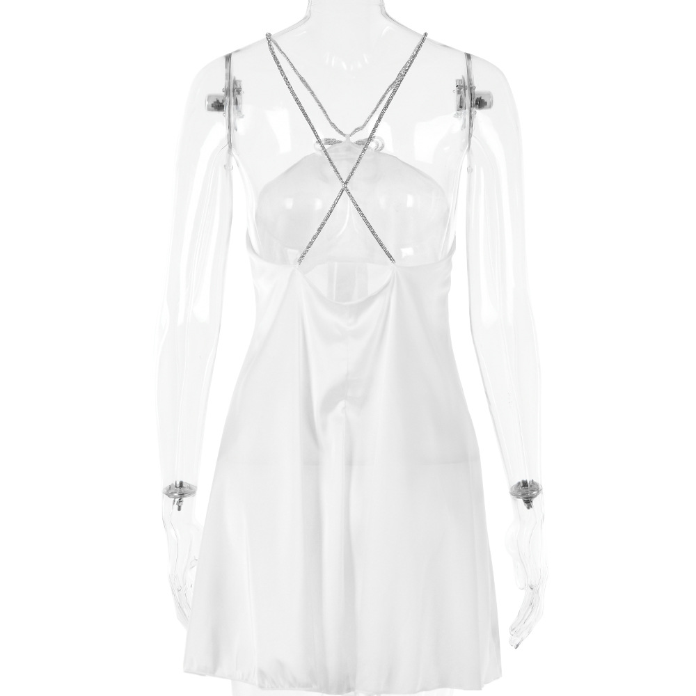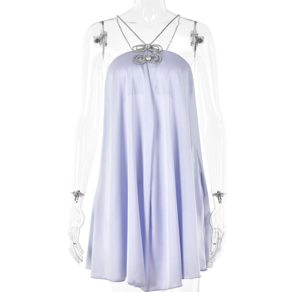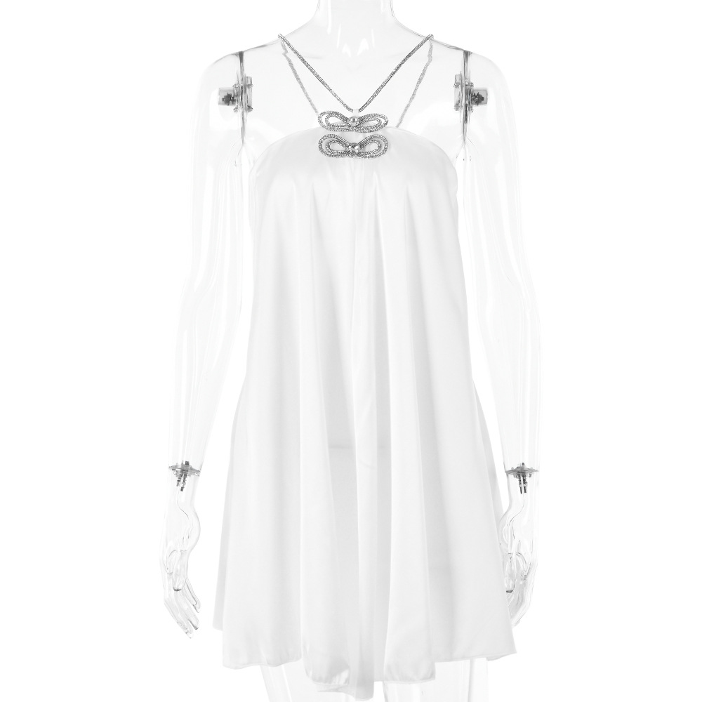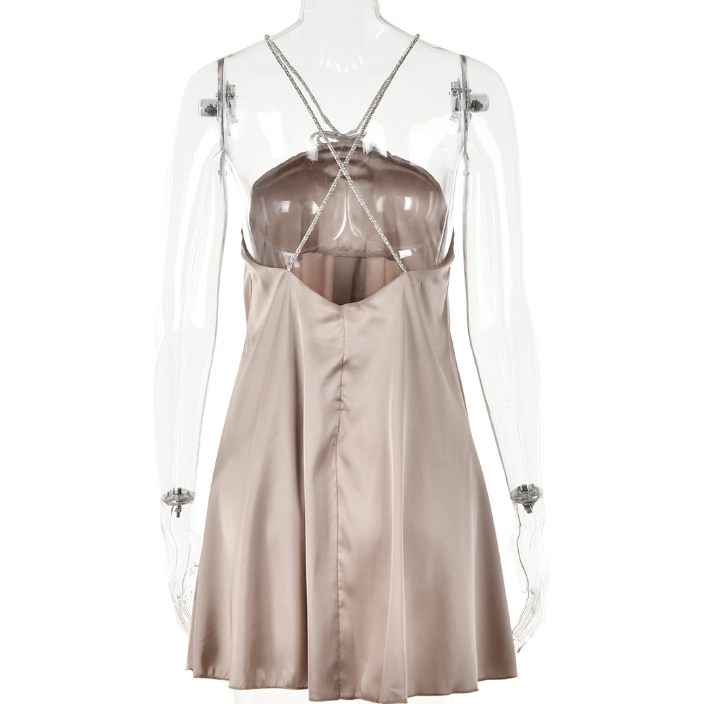 Rhinestone Halterneck Backless Tube Top Short Dress
