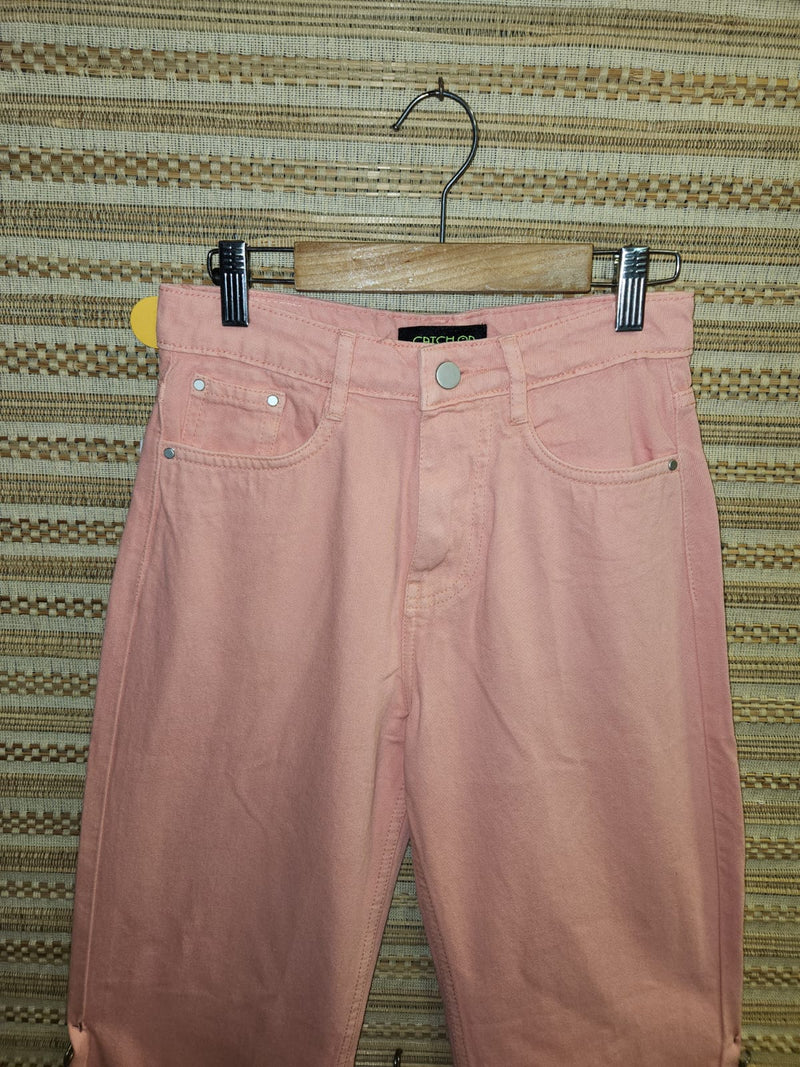 Peachish Pink High Waist Wide Leg Denim Pants