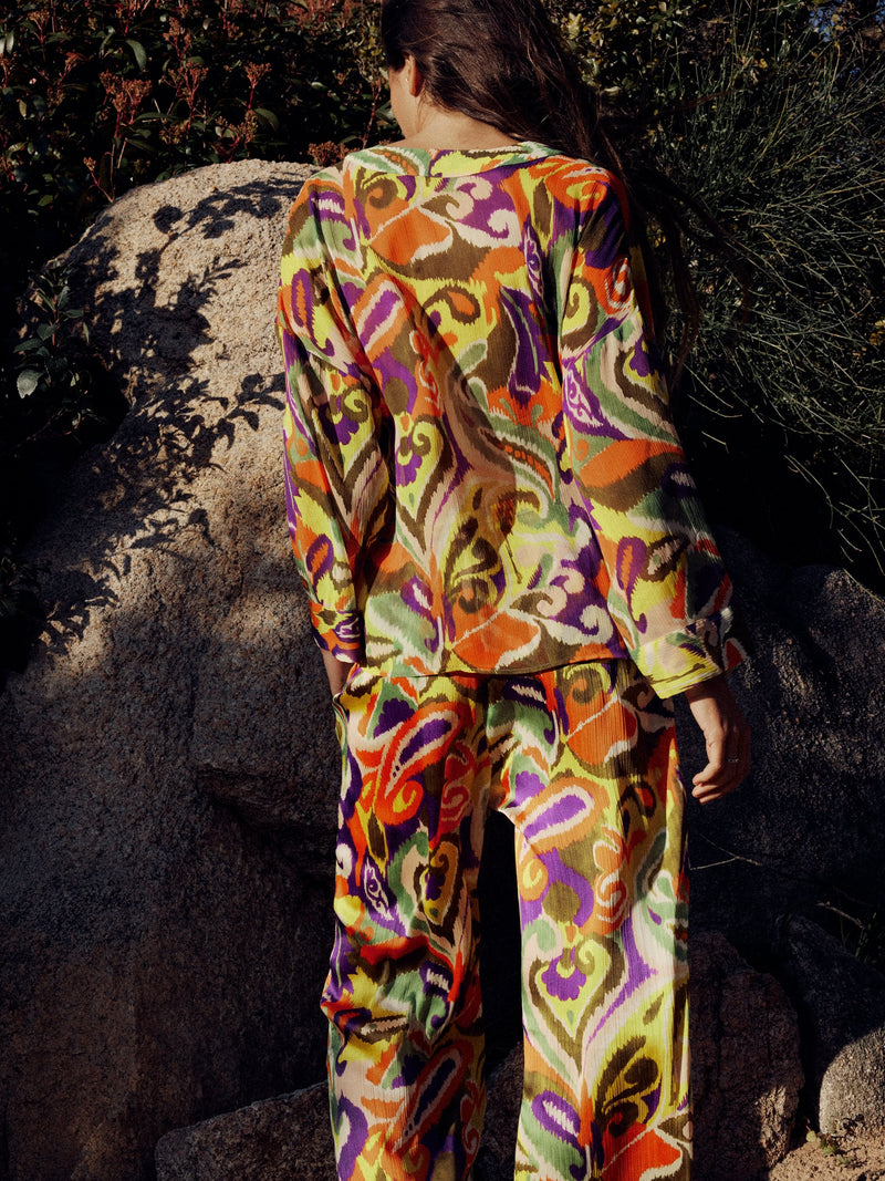 Abstract Print Shirt & Wide Leg Pants Coord Set