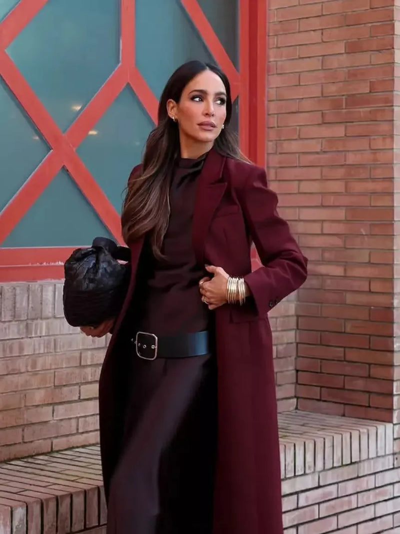 Flowing round neck dress with sleeveless armholes and shoulder pleats. Belt detail. Back fastening with opening and hidden buttons.
