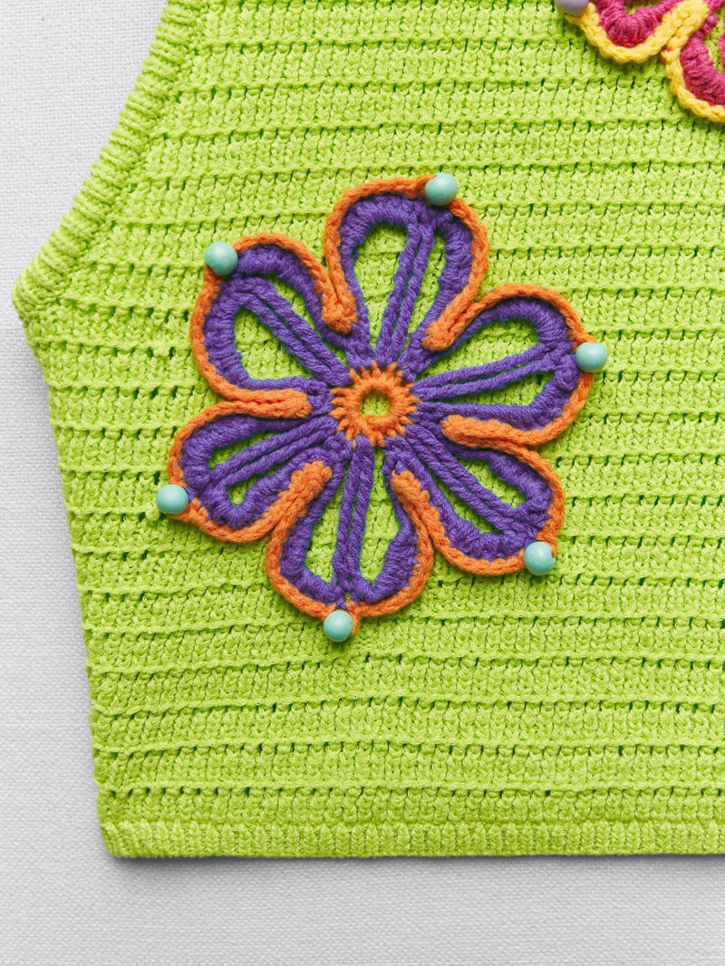 Green Sleeveless Applique Top