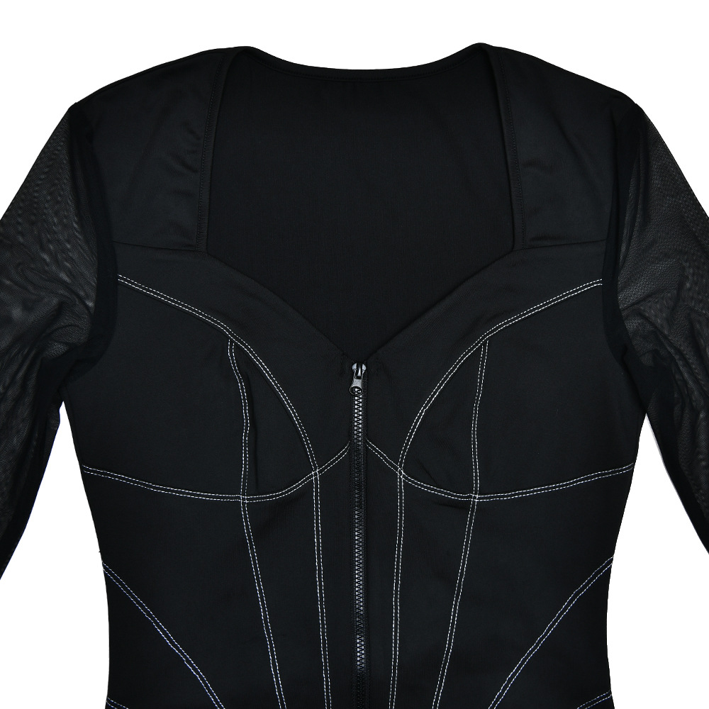 The corset, reinforced with mesh, effectively shapes the figure, accentuates every curve, and narrows the waist. The anatomical cut of the jumpsuit ensures it clings to the body, creating a second-skin sensation.