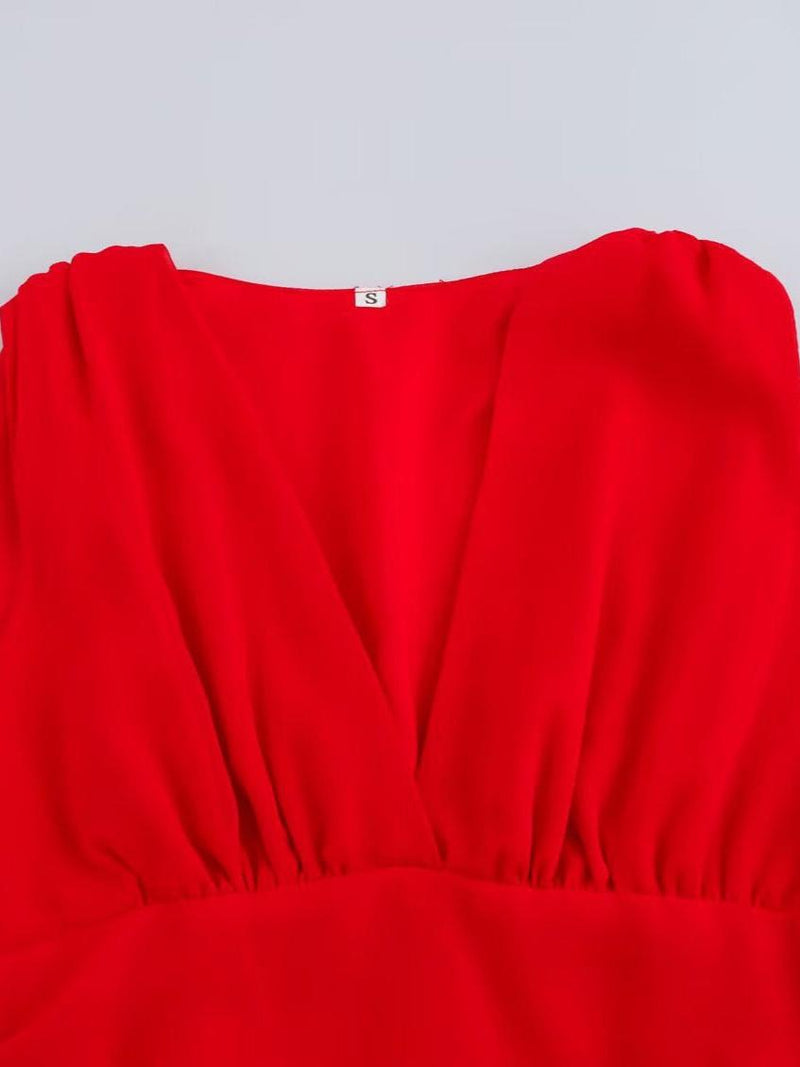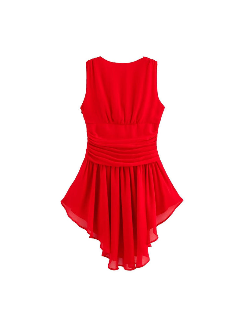 V Neck Sleeveless Ruffle Asymmetric Dress